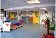 La escuela está ubicada en el bajo de un edificio de dos plantas; cuenta con 6 aulas, biblioteca y sala de usos múltiples amplia. Dispone de un jardín exterior privado con zonas verdes y zonas adaptadas para los niños. Cuenta con cocina propia.